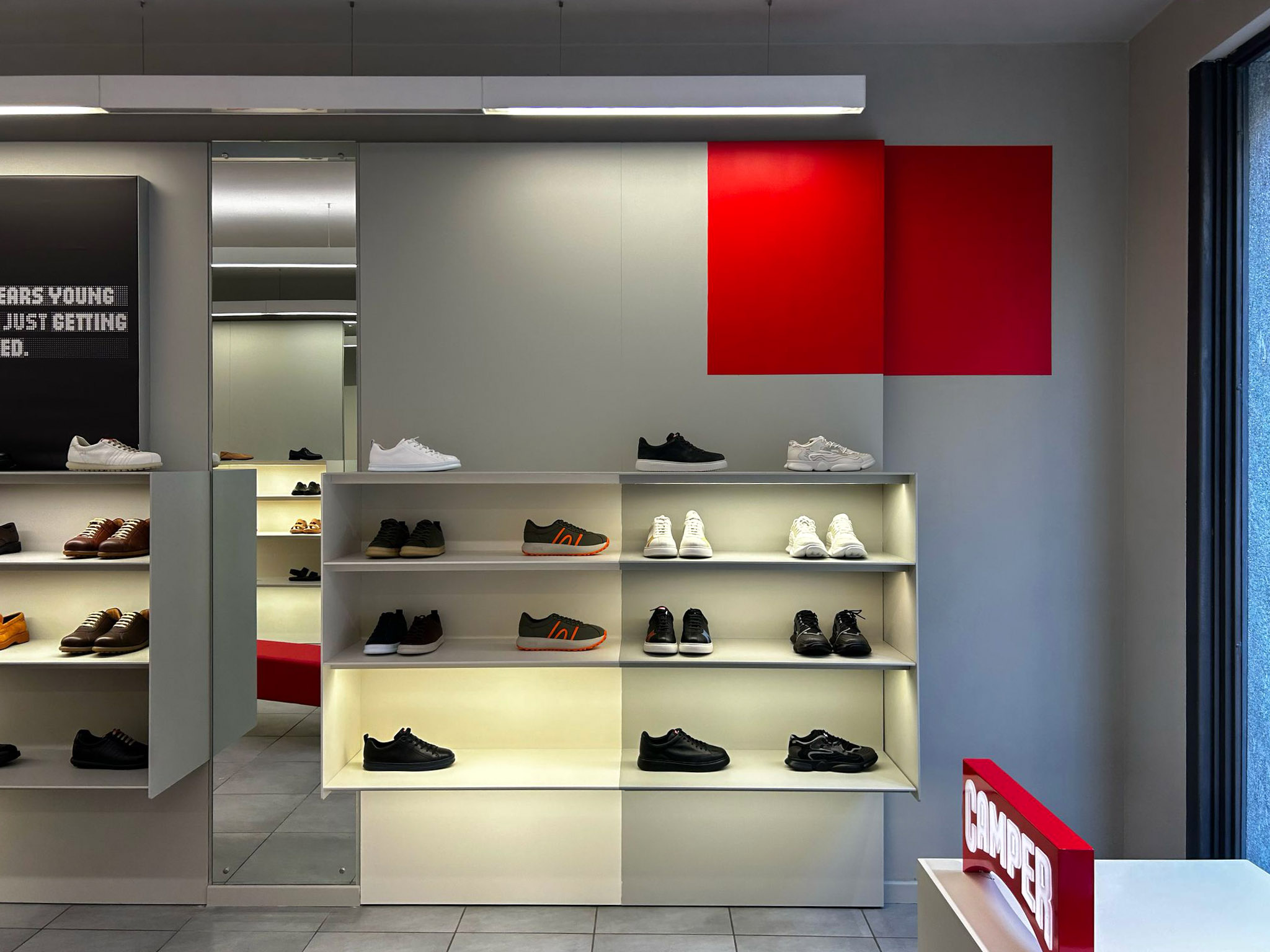 The project consisted of the reactivation of 22 commercial spaces now operated by the Camper franchise partner Asak & Co. SPA, previously occupied by another footwear brand. Far from proposing a tabula rasa, the project assumes the existing architecture as both condition and working material.
