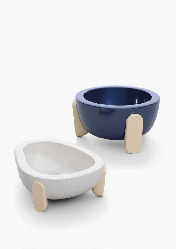 Concave ceramic elements for alimentary use, supported by three individualized 3D-printed stilts. Open-ended in function, they adapt to any position, place, or intention. Half crafted, half engineered, the object stands at the threshold between nature and device. More than a container, it is a presence; a hybrid entity that reflects the fluid duality of its user: organic and artificial, ancestral and imminent. It does not serve but converses. Martí Guixé