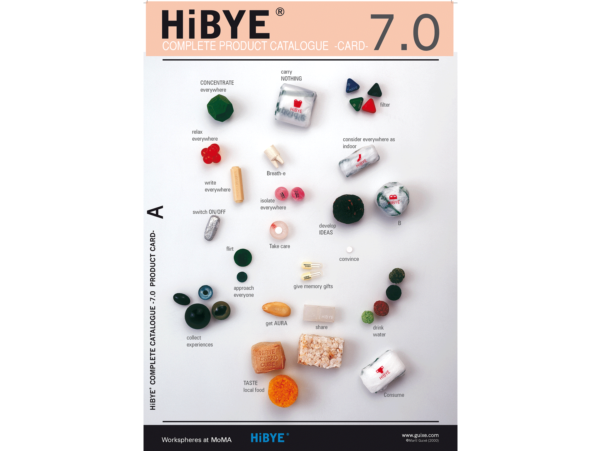 HiBYE originated from a commission by curator Paola Antonelli for the exhibition Workspheres, inaugurated at the Museum of Modern Art, New York, on February 8, 2001. The proposal consisted of conceiving a technological object for nomadic workers, at a moment when mobility was beginning to be redefined through emerging digital technologies.