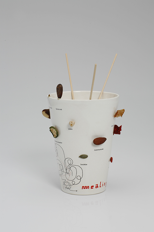 For designer Marti Guixé, the word "mealing" describes the act of eating a meal, as well as the social concept of a relational meal. Mealing is a three-hour performance and meal-in-motion for