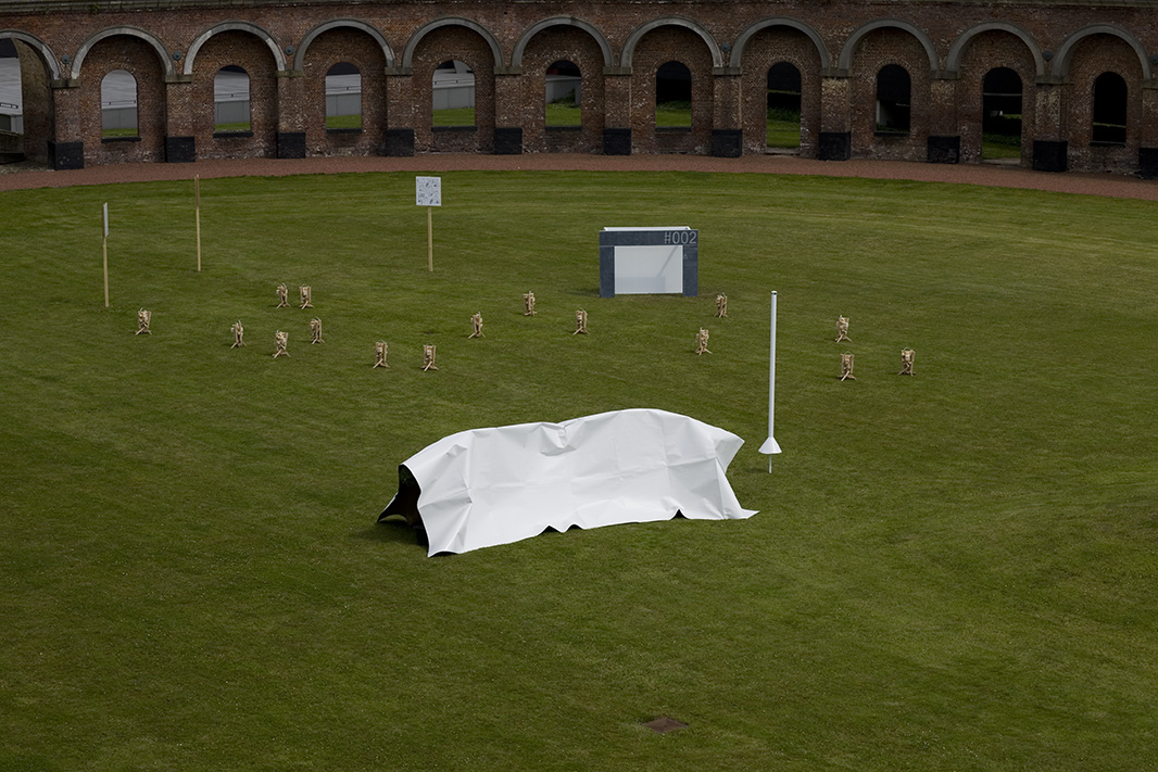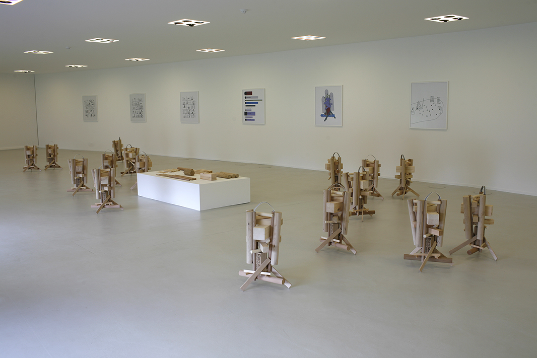 Park life #001 Domesticator Props Park life #002 Public Fireplace Park life #003 Burn-Me pieces Park Life Park Life seeks to reconsider everyday life as a luxury leisure sport. In Catalonia, midsummer night is traditionally celebrated by lighting big fires. For a few hours Barcelona is turned into a theme park playing with fire. Open-End exhibits several Park Life elements related to fire: Domesticator Props: fire as the central axis of the house; home and fire as elements of appropriation, occupation and ‘domestication’ of non-urbanized contexts. Public Fireplace: a playground, a stadium in a public space where you can play with fire. Burn-Me Pieces: woodpile which functions as a technical kit and a product originating from the isolation of the fire for security reasons, from its persecution by environmental themes and from the transformation of fire from a basic need into a sport, from an instrument into a lifestyle product. Open-end exhibition Grand-Hornu, Belgium 22.06 - 05.10.2008 Photo Inga Knölke 2008 |