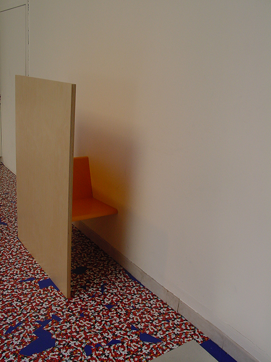 With the idea of building privacy, this chair on one side is fixed to a wall while the other side is made of a large wooden element.